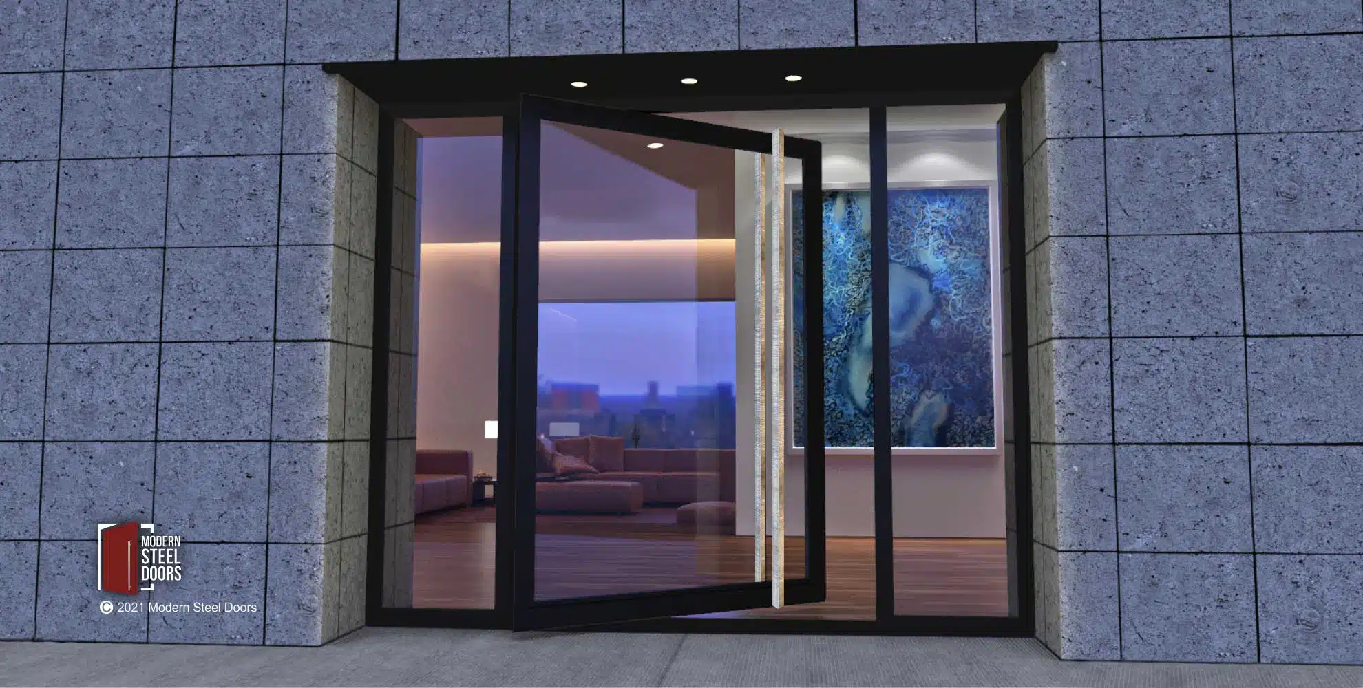 Clean and simple, a modern glass door design is a home run in every home. Achieve superior aesthetics and functionality with a front door that sets the bar. Modern Steel Doors specializes in modern design, custom sizes, and pivot technology.